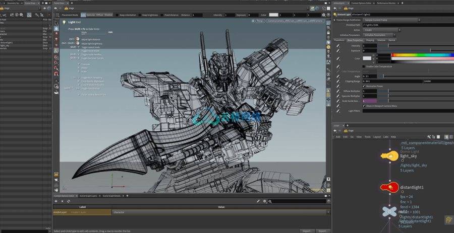 为作品添加最终润色。在Houdini的Solaris环境中构建场景:从导入动画角色与环境,到灯光与渲染全流程。