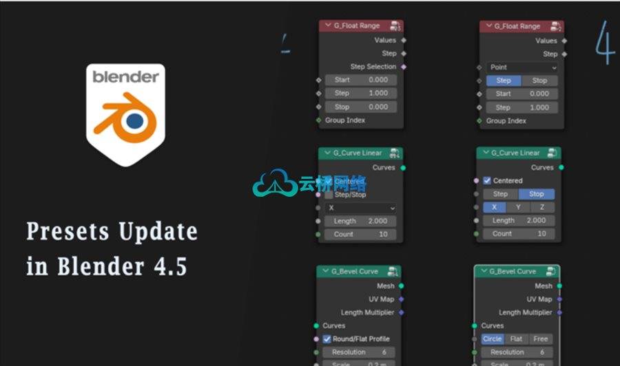 该插件会自动下载并更新预设,因此您无需访问此页面或其他页面即可获取最新版本。使用插件后,预设将自动匹配您的 Blender 版本。对于 Blender 4.0,预设为 2.0;对于 Blender 4.5,预设为 2.5;对于 Blender 5.0,预设为 3.0,以此类推。Mograph 预设旨在加快工作流程并提高几何节点的可访问性。bradley animation