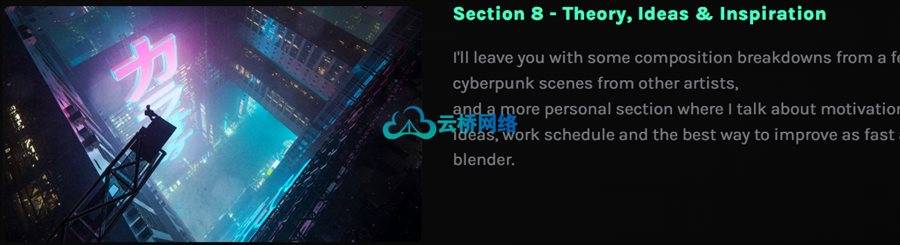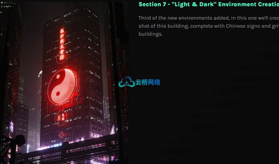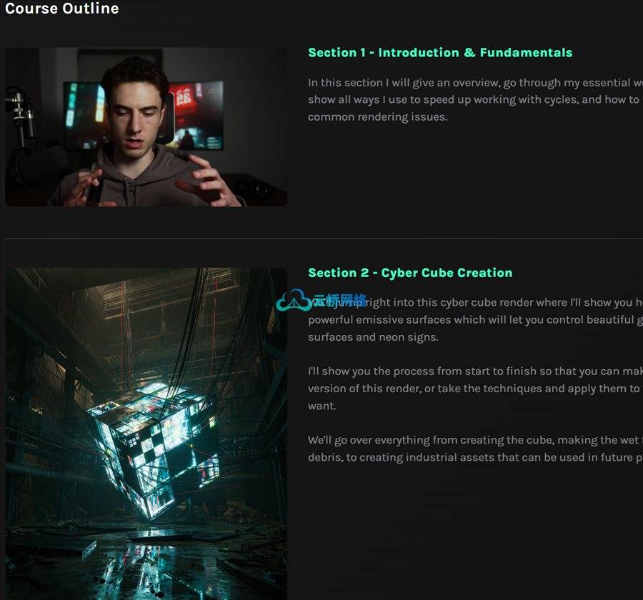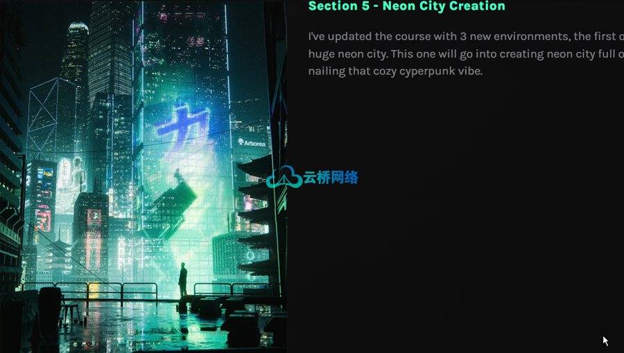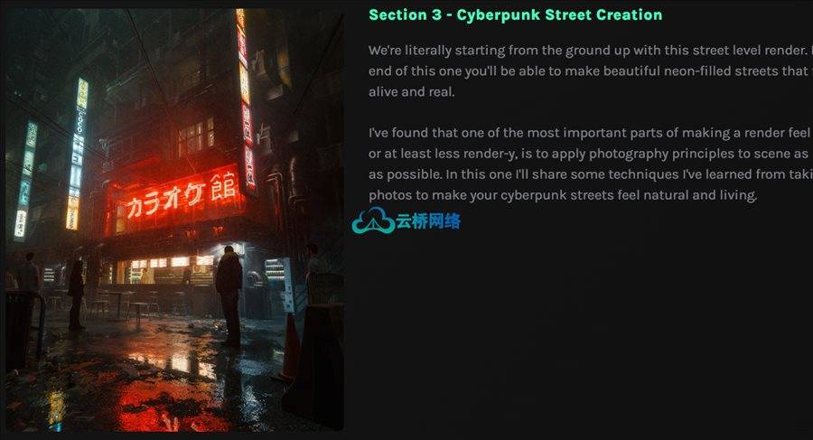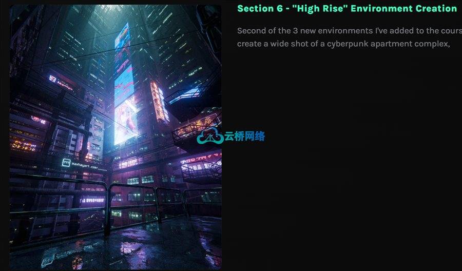 - 完整流程:从建模到细节处理(如湿滑地面和工业资产),学员将掌握如何独立完成一个赛博立方体场景。