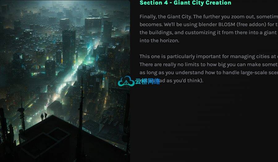 - 城市屋顶视角:学习如何制作高楼、光轨和道路,并掌握大型城市场景的管理技巧。