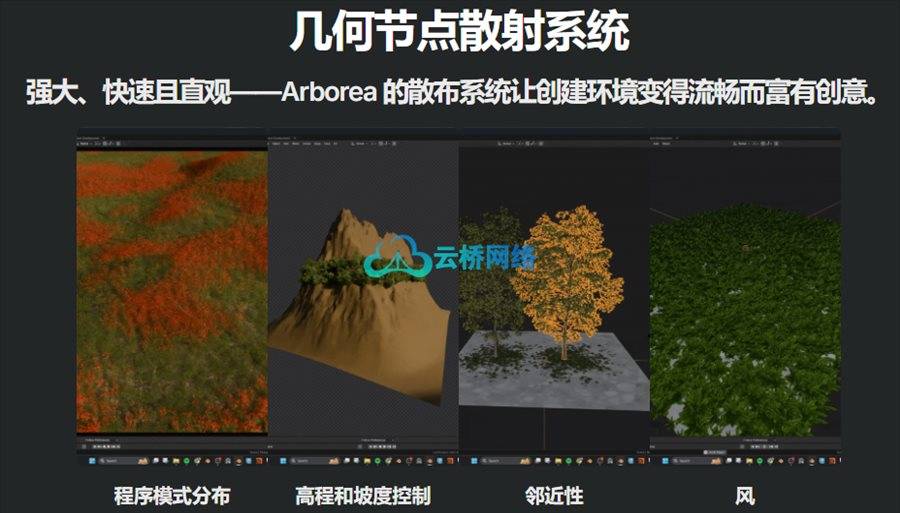 Arborea的核心优势之一是其强大的程序化工具,这些工具能够显著提升环境创作的效率与灵活性。