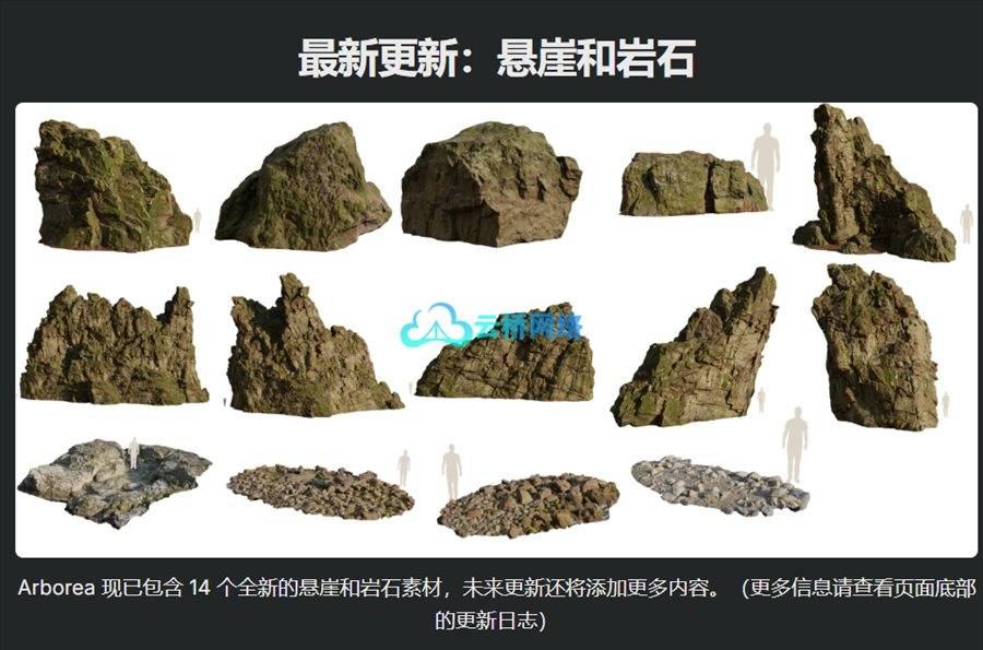此外,Arborea的资产库还在不断扩展。最新更新中新增了14种悬崖和岩石资产,未来还将持续推出更多内容。