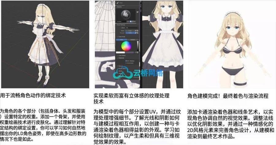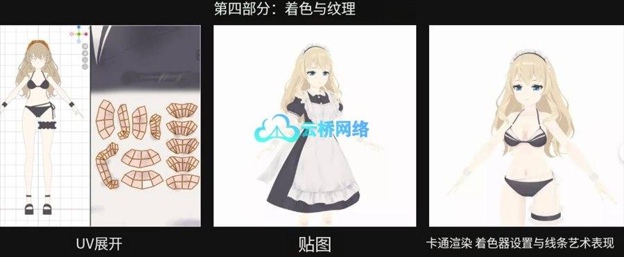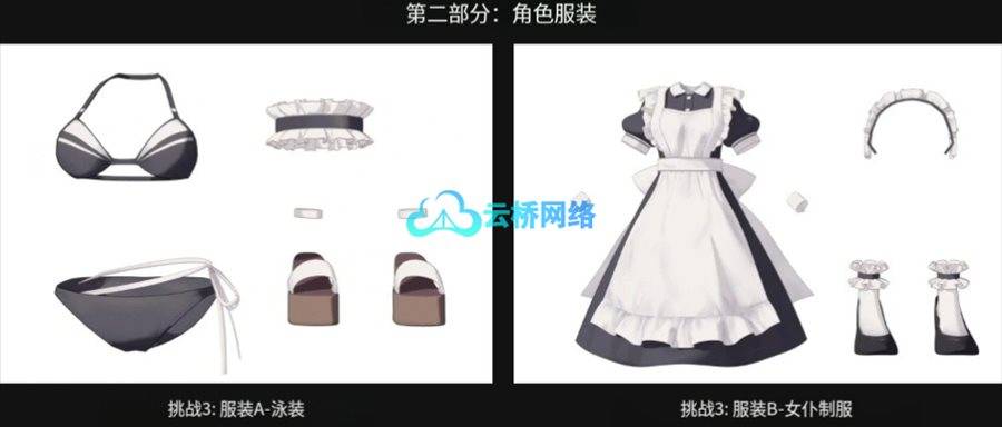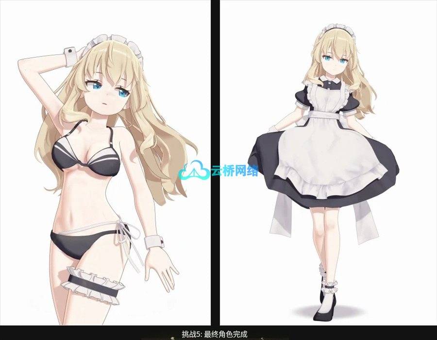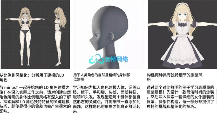 服装是角色设计的重要组成部分,不同的服装风格对建模技术提出了不同的要求。课程通过对比泳装和女仆装的建模过程,帮助学习者掌握从简单到复杂的服装建模技巧。
