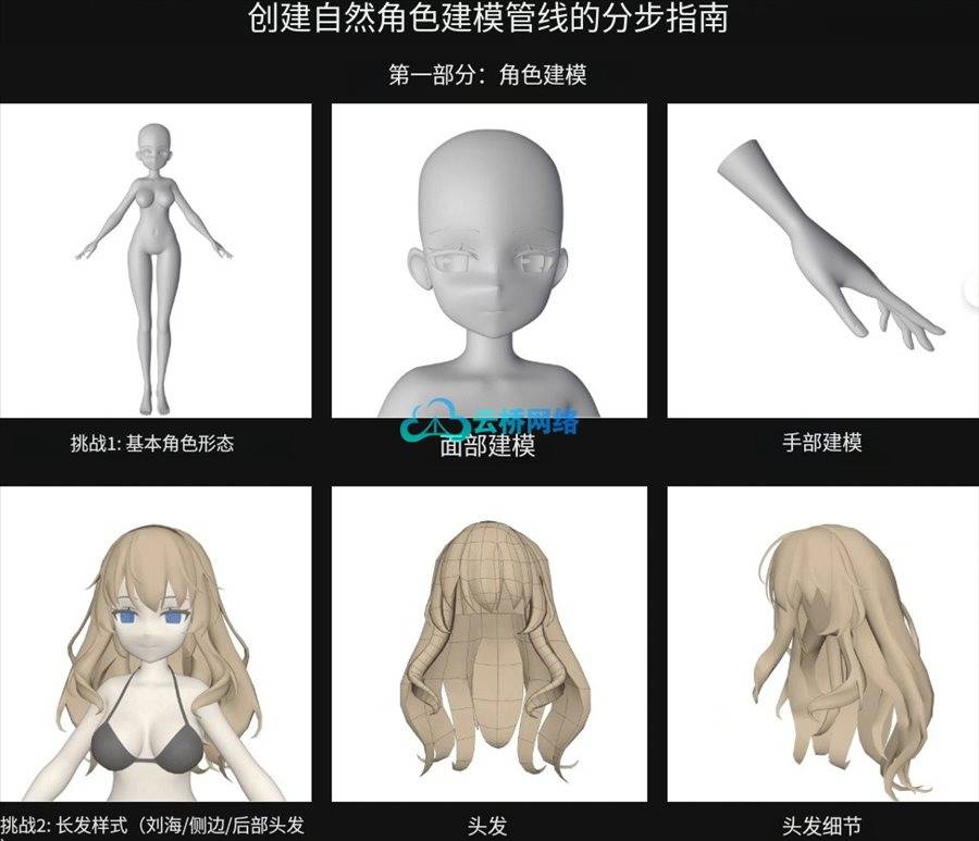 - 头发:无论是长卷发还是短发,课程都会介绍如何通过粒子系统或多边形建模实现自然的效果。