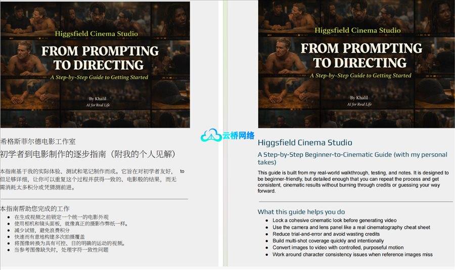 可跨平台复用的核心提示词模板,即使脱离本指南,也能在其他工具与工作流中构建电影级提示体系。
