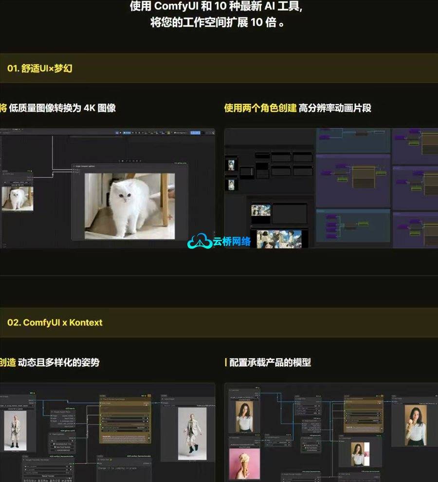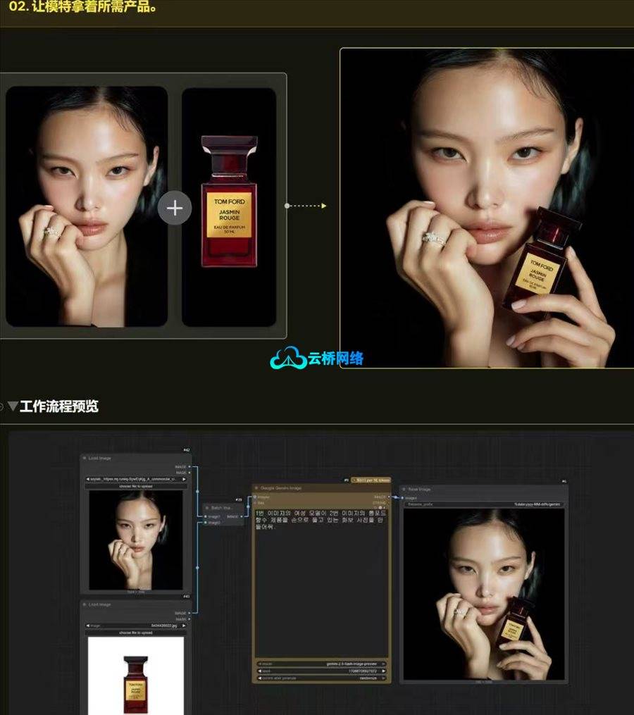 ComfyUI x Nano Banana全流程大师课,学习的包括保留模型并改变摄像机角度、产品合成到人物中、风格化图片制作
