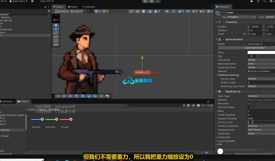 – 设计子弹预制体(Prefab),包含 Collider2D 和 Rigidbody2D(必要时设为 kinematic)及脚本用于移动与生命周期管理。